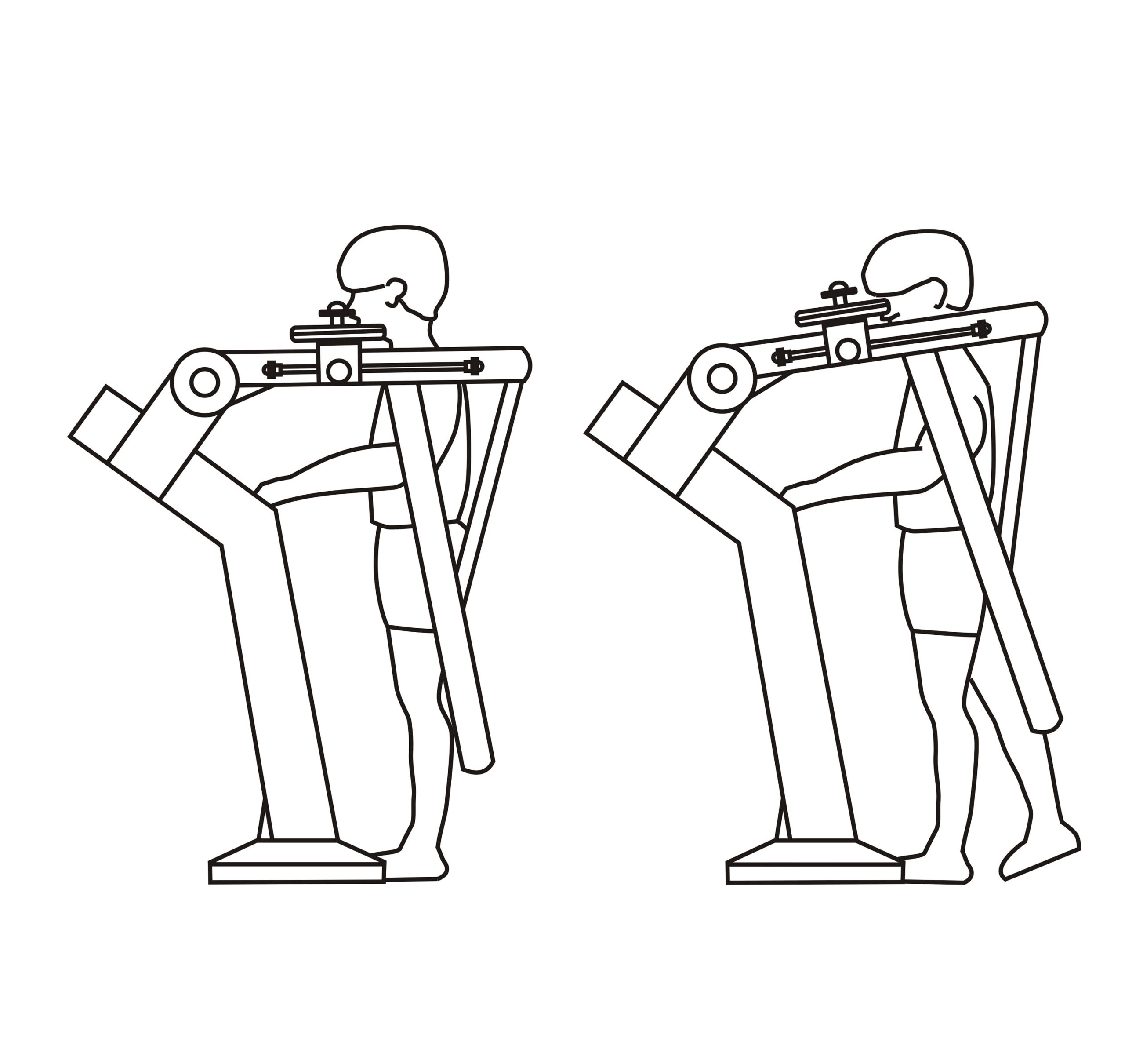2) Stand with your front to the equipment, feet shoulder width apart. Grip the rail and put your calf against the lower roller.