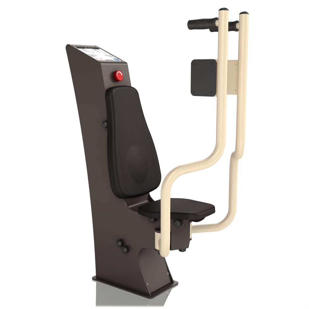 Instructions: Sit on the seat and lean your back against the backrest and grab the handles. Slowly push the handles together until you feel the tension in your chest muscles. Slowly return your hands to the starting position while inhaling until your chest muscles are completely relaxed.